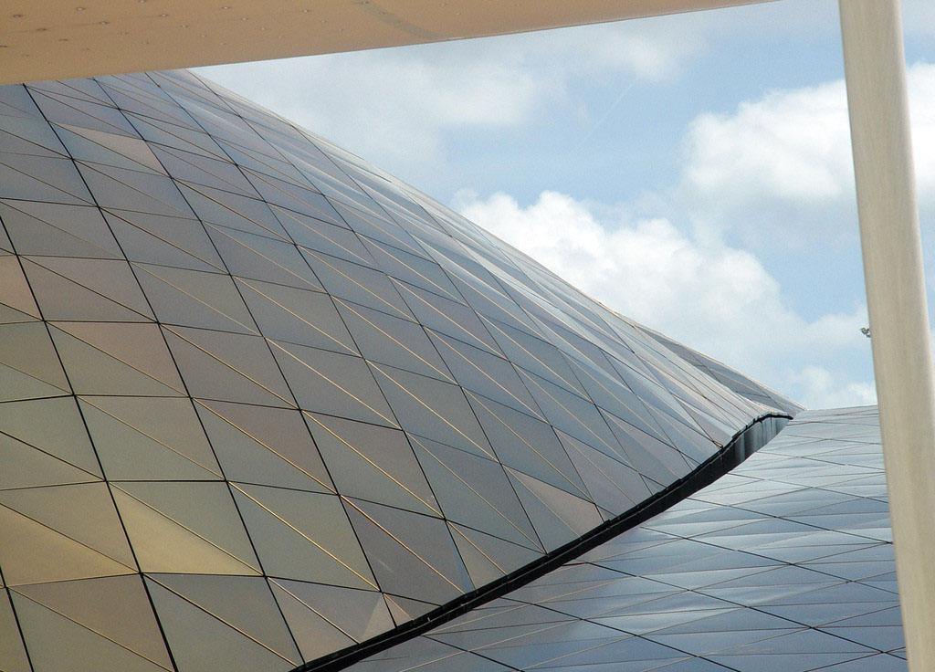 2、鋁板幕墻工藝性好。采用先加工后噴漆工藝,鋁板可加工成平面、弧型和球面等各種復(fù)雜幾何形狀。